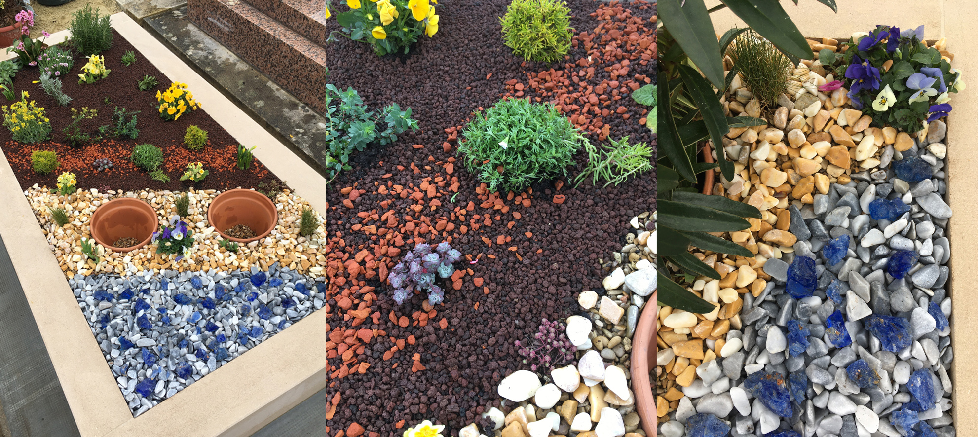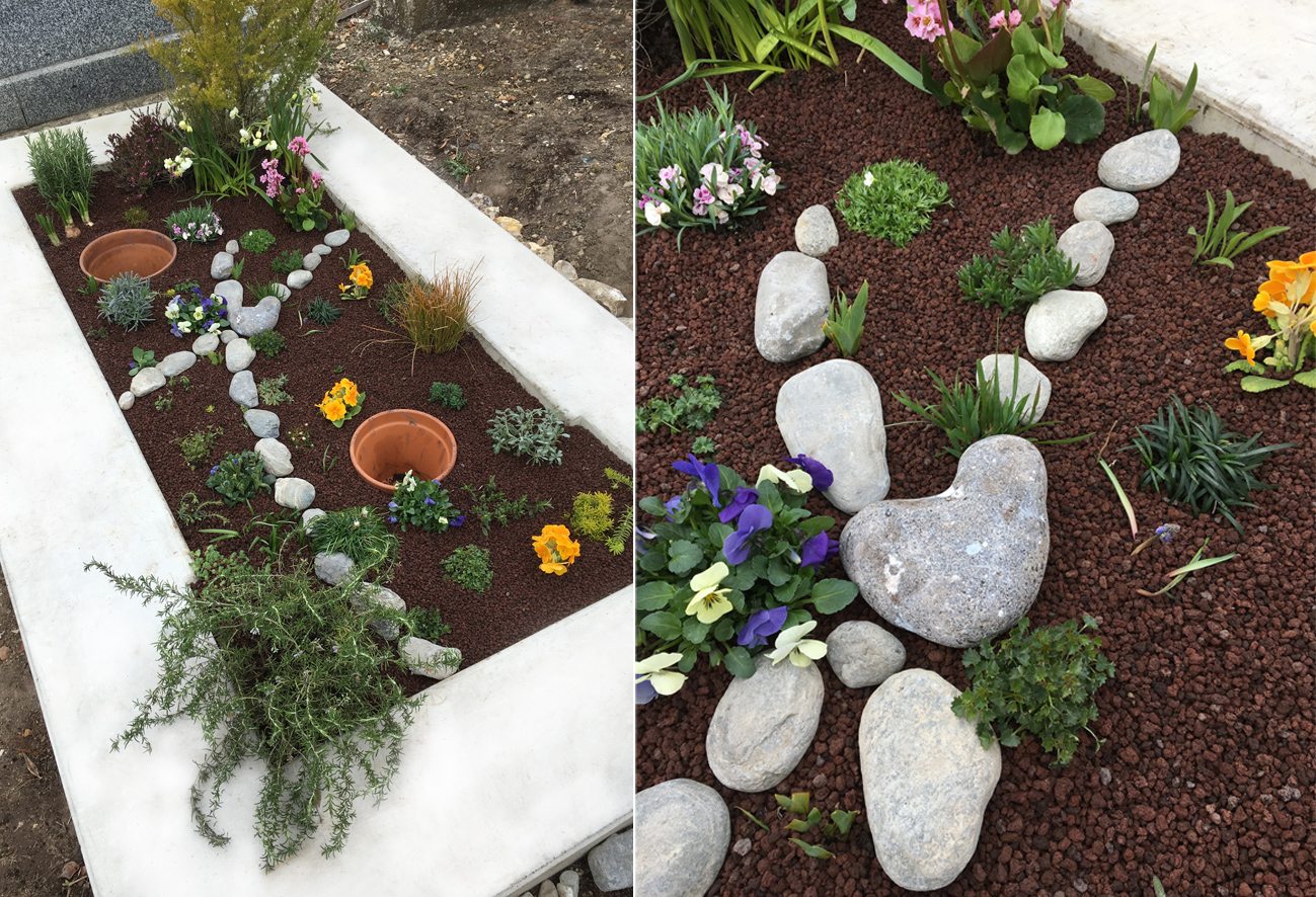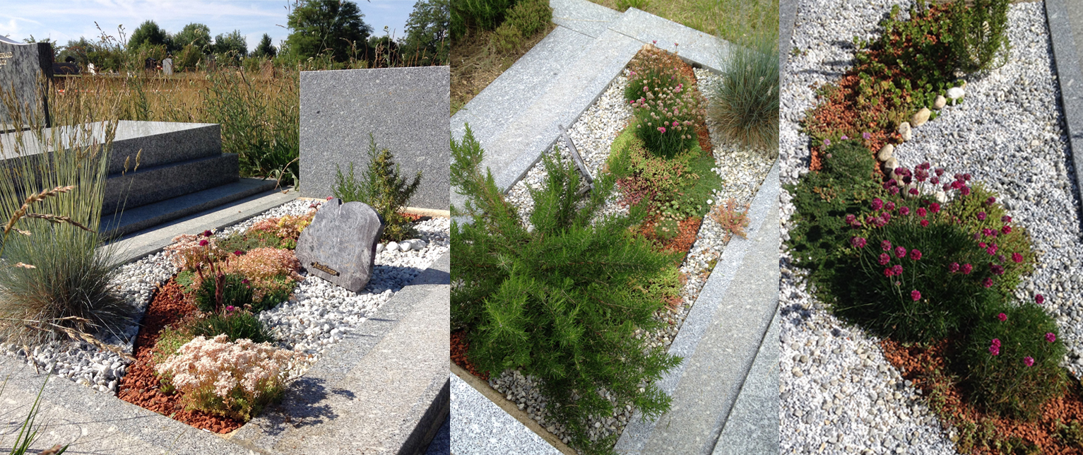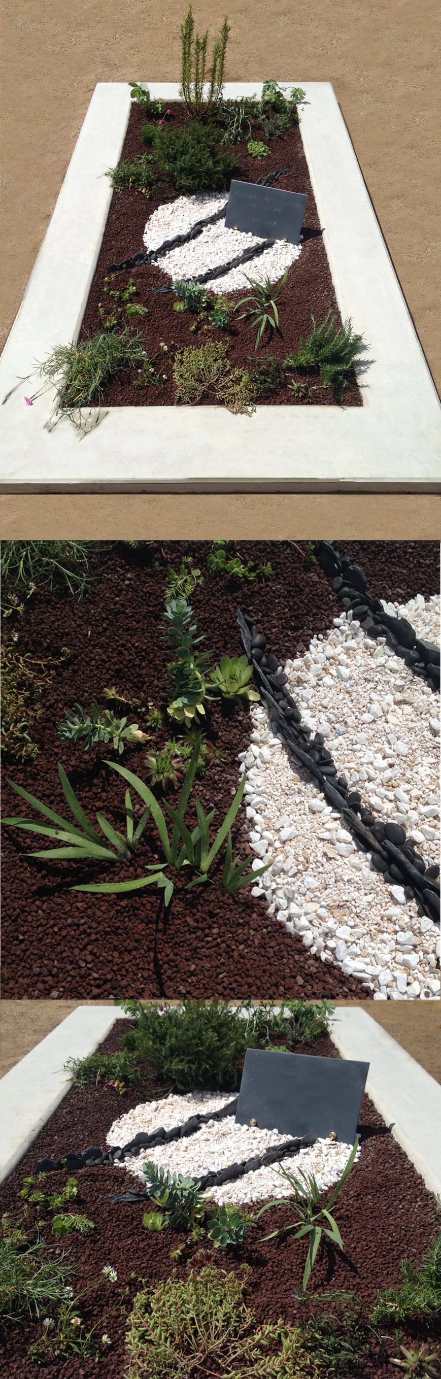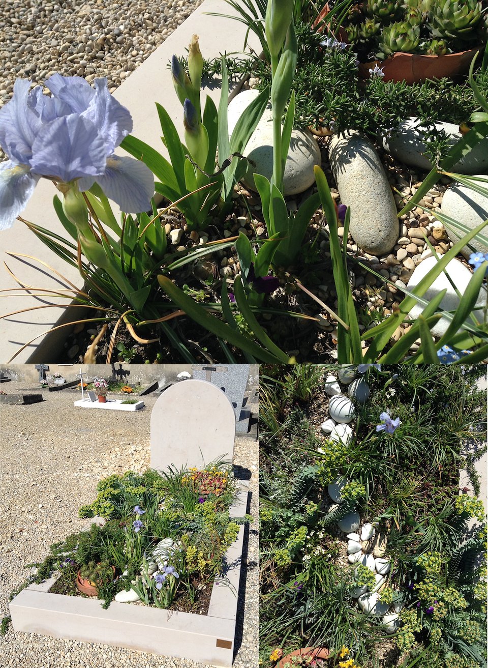 Sur caveau ou en pleine terre, la sépulture paysagère est plantée directement dans la semelle (entourage au sol) ou bien dans un soubassement (monument sur dalle). Entièrement personnalisé, chaque jardin sur tombe est différent et s’adapte aux souhaits des proches comme à l’environnement qui l’accueille. Un jardin sur tombe est autorisé dans tous les cimetières.
