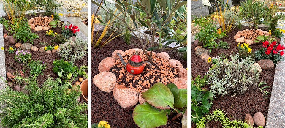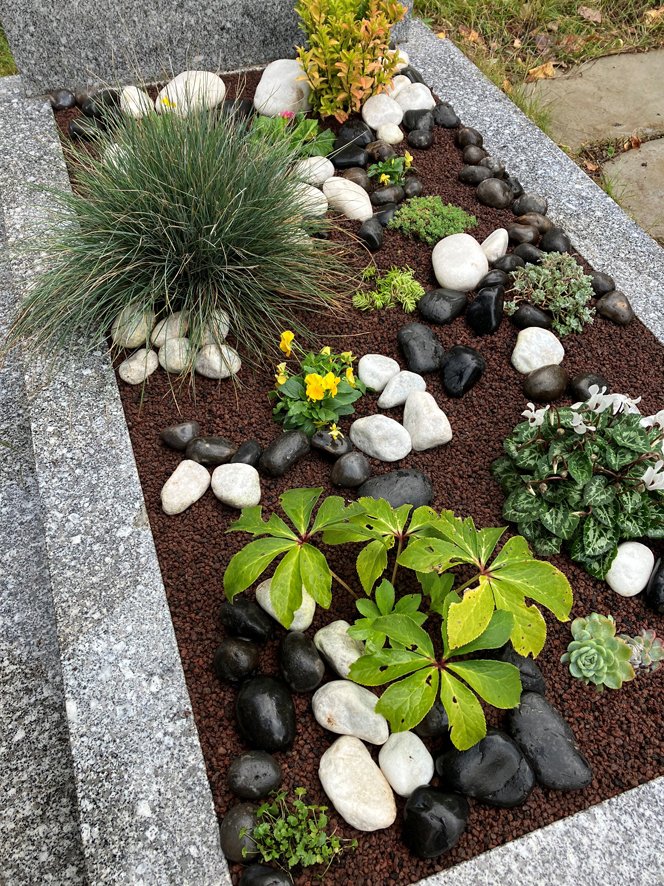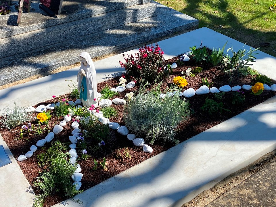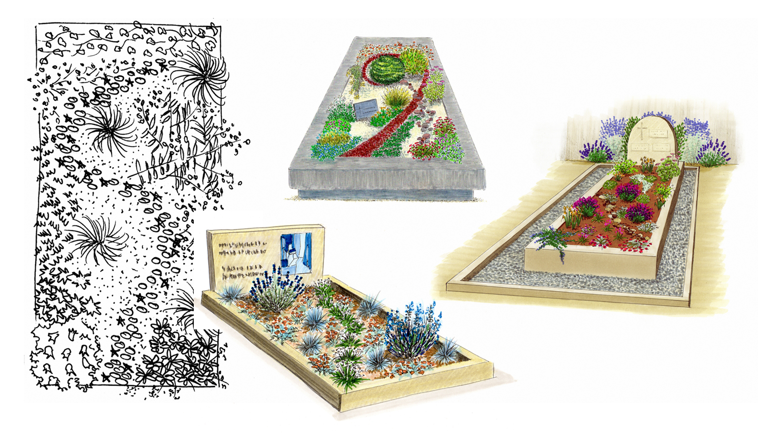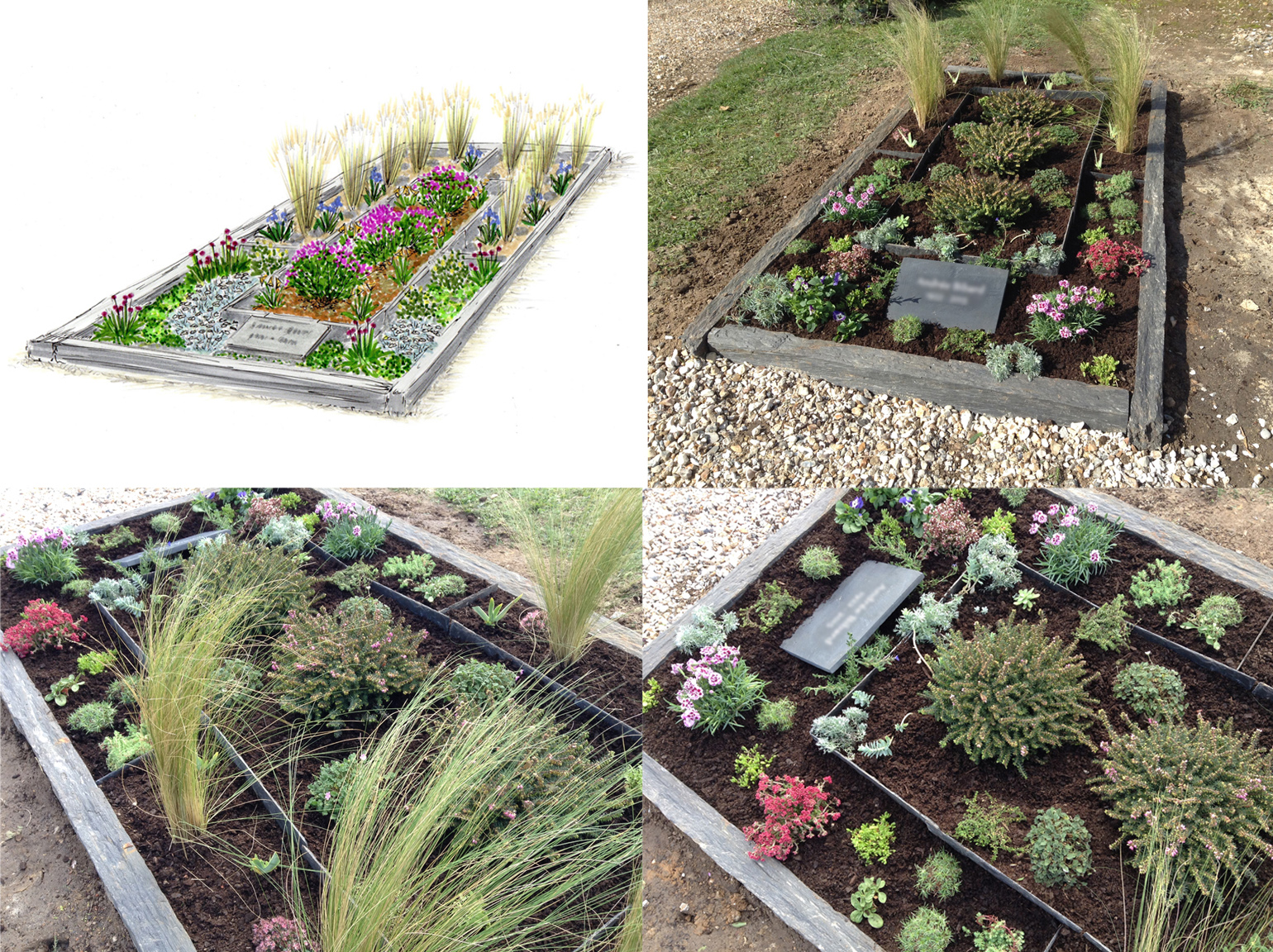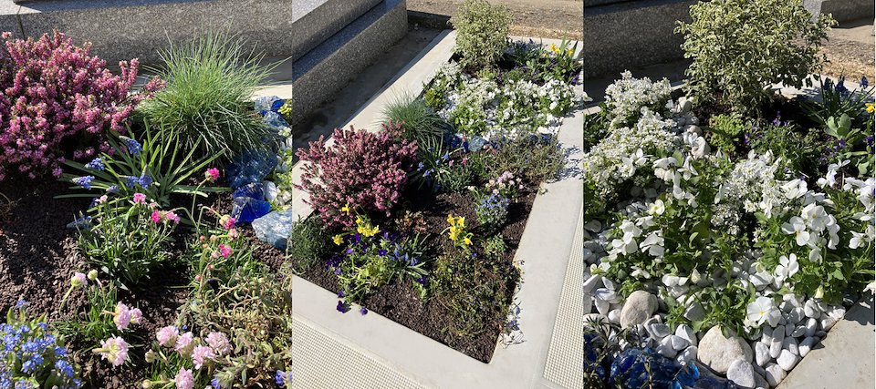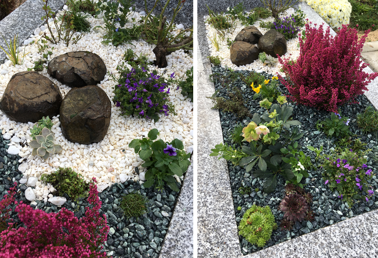 Sur caveau ou en pleine terre, la sépulture paysagère est plantée directement dans la semelle (entourage au sol) ou bien dans un soubassement (monument sur dalle). Entièrement personnalisé, chaque jardin sur tombe est différent et s’adapte aux souhaits des proches comme à l’environnement qui l’accueille. Un jardin sur tombe est autorisé dans tous les cimetières.