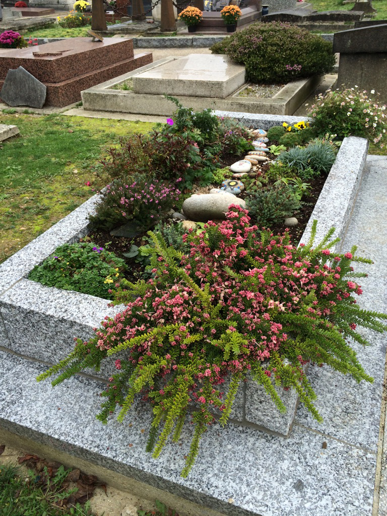 Sépulture paysagère sur caveau. Fontenay-sous-Bois. Mars 2021